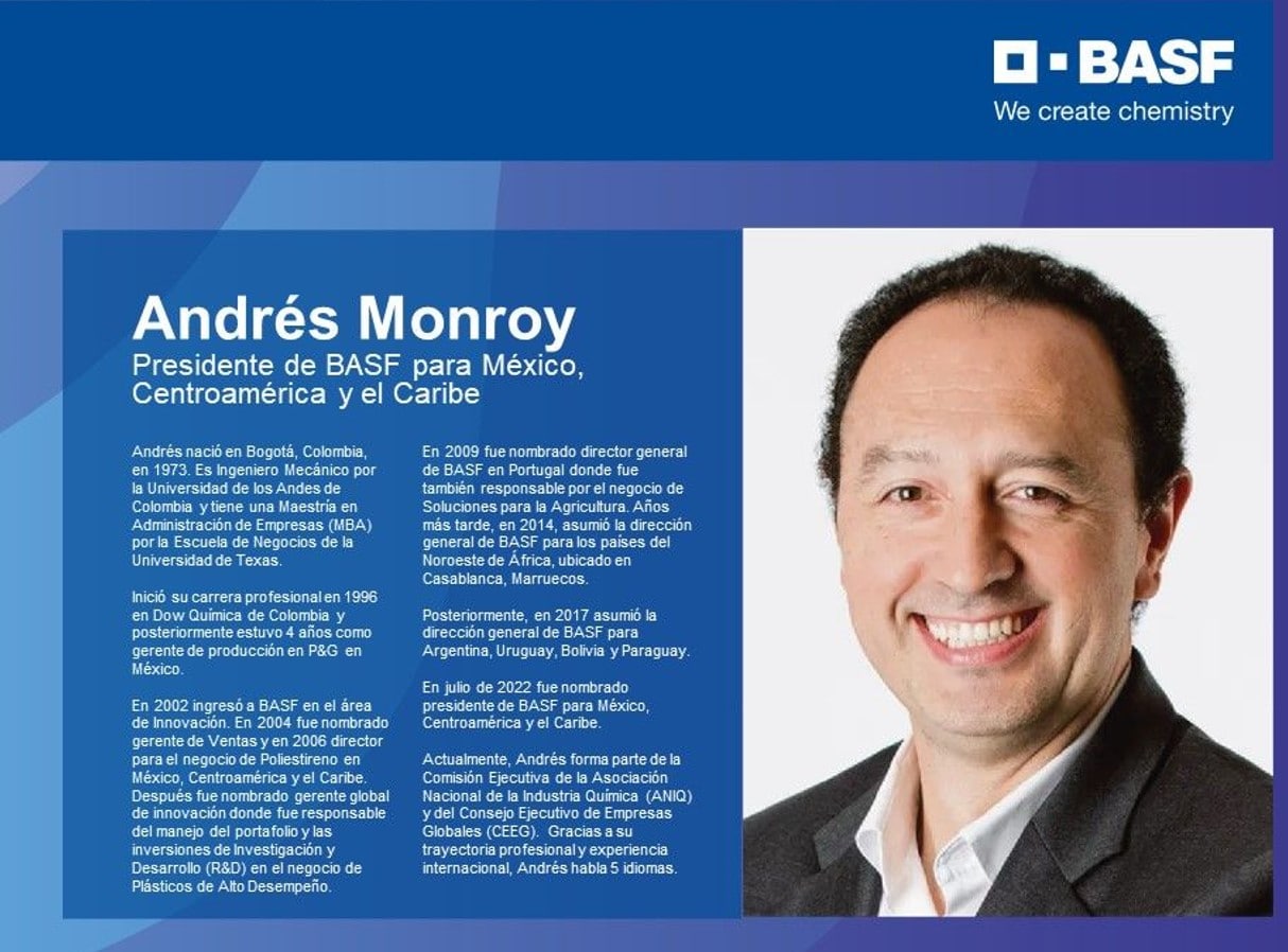La alemana BASF eligió a Andrés Monroy como capitán para México, Centroamérica y el Caribe. El colombiano tomará la posta de Claus Wünschmann, quien fue asignado en una nueva posición en Brasil. En paralelo, dejará vacante su lugar al frente de la Argentina, Bolivia, Uruguay y Paraguay.