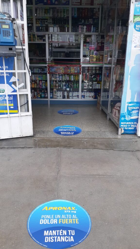 Según consigna el sitio Perú Retail, la compañía le acercó a las farmacias diferentes elementos que colaboran en el funcionamiento de los locales en este 2020 de COVID-19. Así, por caso, colocó divisores plásticos en el sector de atención al público a fin de mantener el distanciamiento social bajo el protagonismo de su antiinflamatorio Apronax y de su analgésico Aspirina. También pegó en el piso «señaladores» con el objetivo de marcar la distancia entre los clientes, y además dispensers de alcohol en gel a pedal con el logo del multivitamínico Redoxon. Ver artículo.