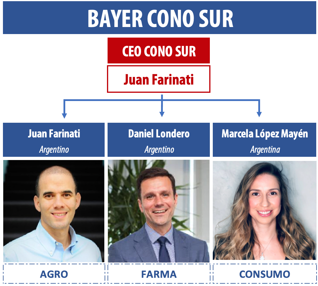 El agro manda en Bayer. El que se pondrá a la cabeza de Bayer Cono Sur desde noviembre es el argentino Juan Farinati, graduado en ingeniería agropecuaria de la UCA. El ejecutivo, es el actual Chief Operating Officer para la división Agro.
