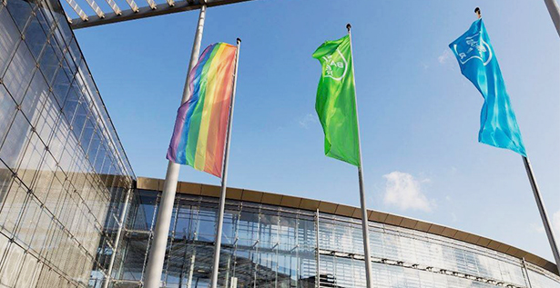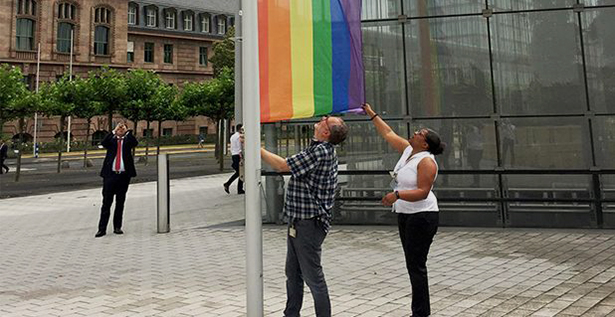 La alemana Bayer hizo flamear una bandera multicolor en sus oficinas centrales.