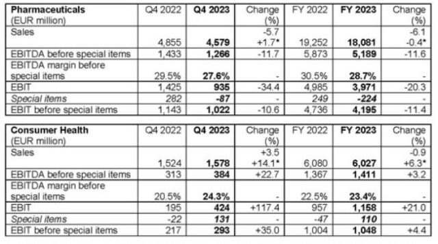 El negocio de Consumer Health, en tanto, registró una ligera caída del -0,9% a €6.027millones en comparación al fuerte desempeño de esta unidad en 2022. El negocio aumentó en todas las regiones excepto en América del Norte, donde las ventas se mantuvieron al nivel del año anterior, explicó la multi.