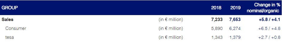 En tanto, su negocio bautizado Tesa, que incluye productos autoadhesivos, mostró una suba en ingresos del 0.8% a nivel global, aunque dicho aumento le significó en realidad una baja de 6 puntos porcentuales frente a lo registrado en el 2018, cuando anotó un alza del 6.8%. La unidad cerró el año con ventas por € 1.379 millones. Ver presentación