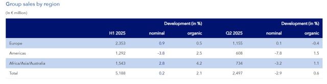 Hoy, miércoles 6 de agosto, la alemana Beiersdorf publicó su informe financiero correspondiente a la primera mitad del año. De acuerdo al documento, las ventas de la compañía a nivel global totalizaron €5.188 millones, cifra que representa un crecimiento orgánico del 2,1% y del 0,2% según lo reportado. Ver press release