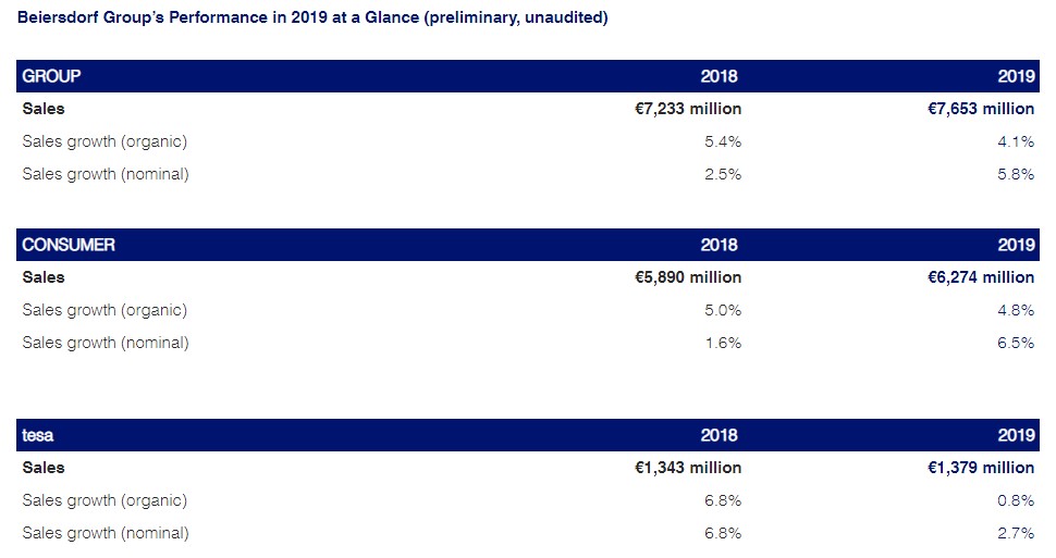 La alemana Beiersdorf, que tiene en su portafolio a la reconocida marca Nivea, dio a conocer hoy jueves 16 de enero sus resultados financieros preliminares del 2019. Ver comunicado.