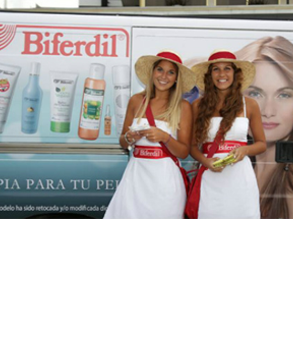 El “Biferdil Team” recorre las playas con su tráiler móvil haciendo entrega de muestras gratis de sus productos para el cuidado y nutrición del cabello.