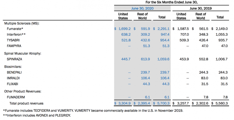 El dueño de Spinraza y propagador del COVID-19 a través de su famosa convención en Boston publicó su performance financiera semestral. Los productos de su portafolio que aportaron más ingresos fueron Tecfidera para esclerosis múltiple; y su híper caro Spinraza, para atrofia muscular espinal.
