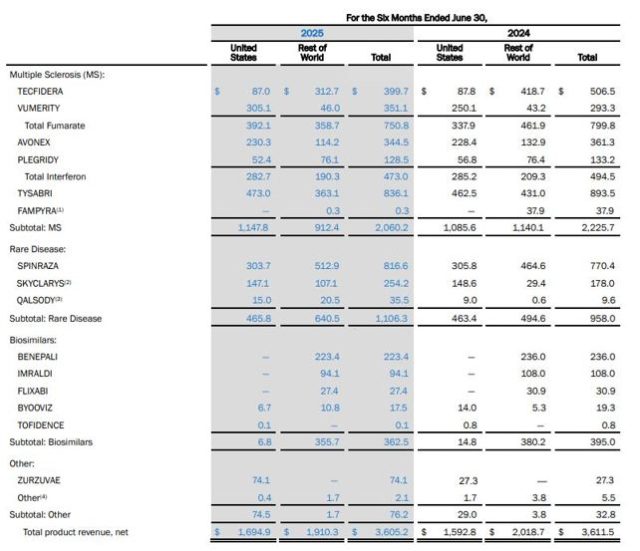 Biogen, la dueña de Spinraza, logró cerrar la primera mitad de 2025 con números azules. Según su último informe de resultados, su facturación creció un 6,8%, por un total de u$s 5.076,5 millones. Ver Press Release