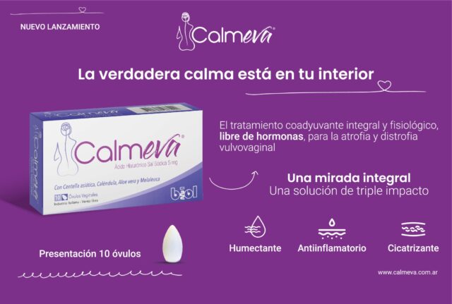 Y en línea con este aggiornamiento de la categoría, el nacional Instituto Biológico Argentino –Biol– lanzó su nueva marca Calmeva. Se trata de óvulos vaginales que combinan ácido hialurónico, aloe vera, centella asiática, caléndula y melaleuca y que -al ser libre de hormonas- pueden utilizarse en posparto y lactancia. El producto está indicado para la sequedad vaginal por diferentes circunstancias, tales como la deficiencia estrogénica, y la atrofia y distrofia vulvovaginal, entre otras.