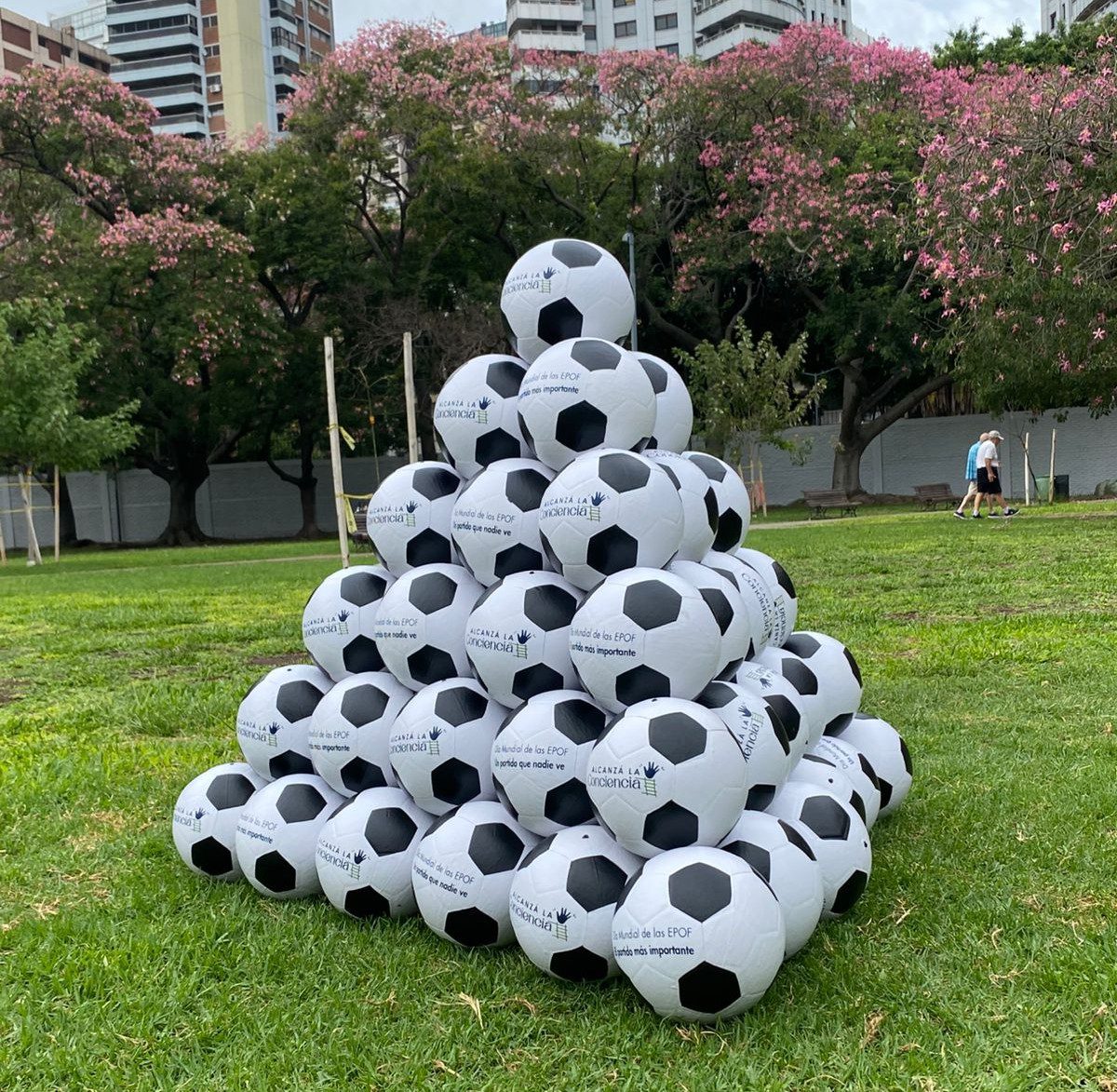 La multi activó una iniciativa en algunas plazas de la Ciudad de Buenos Aires. Allí se instalaron pelotas de fútbol con las inscripciones ‘Alcanzá la conciencia’, ‘El partido más importante’ y ‘Un partido que nadie ve’, junto con información acerca de las EPOF.