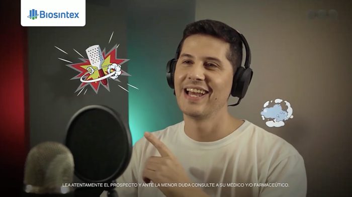 En el spot publicitario que la empresa difunde por la televisión abierta surge una especie de cantante que hace sonar unas rimas alrededor de la marca del laboratorio Biosintex. Aunque el concepto integral de la campaña luce del todo paupérrimo y carente de ideas. Así el producto que combina benzocaína y tirotricina intenta repuntar sus alicaídas ventas, en un marco que coincide con la recesión en la economía local.
