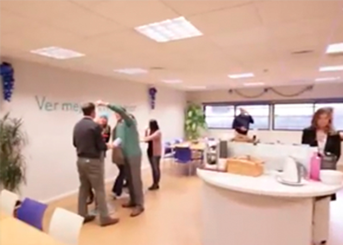 A partir de este «juego de las estatuas», B&L aprovechó para hacer un recorrido de sus oficinas. De manera estratégica, la compañía filmó a varios de sus empleados poniéndose gotitas en los ojos, para mostrarse expertos en su negocio.