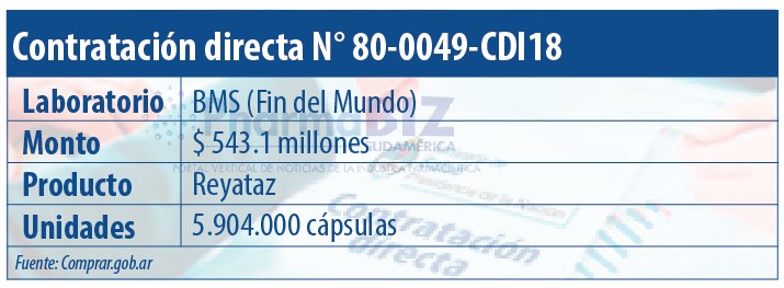 El gobierno desembolsará más de $543.1 millones (u$s 18.2 millones) para la adquisición de Reyataz. Se trata de un antirretroviral que lleva el sello de la norteamericana BMS.