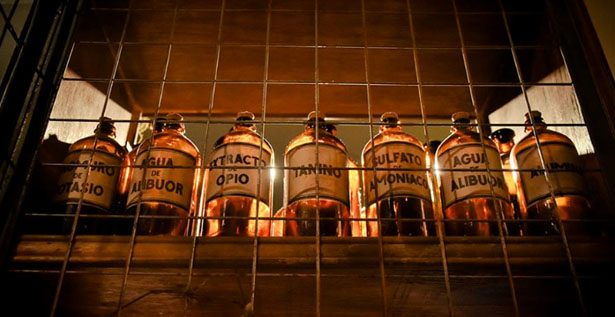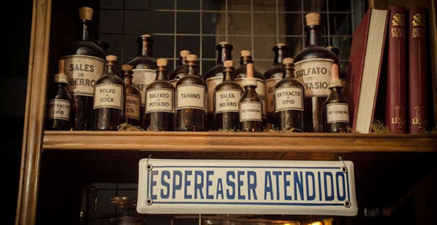 Su propietario, Juan José Ortiz, montó su bar recreando la escenografía de una farmacia del siglo pasado, cuando se elaboraban los medicamentos dentro de la propia botica.