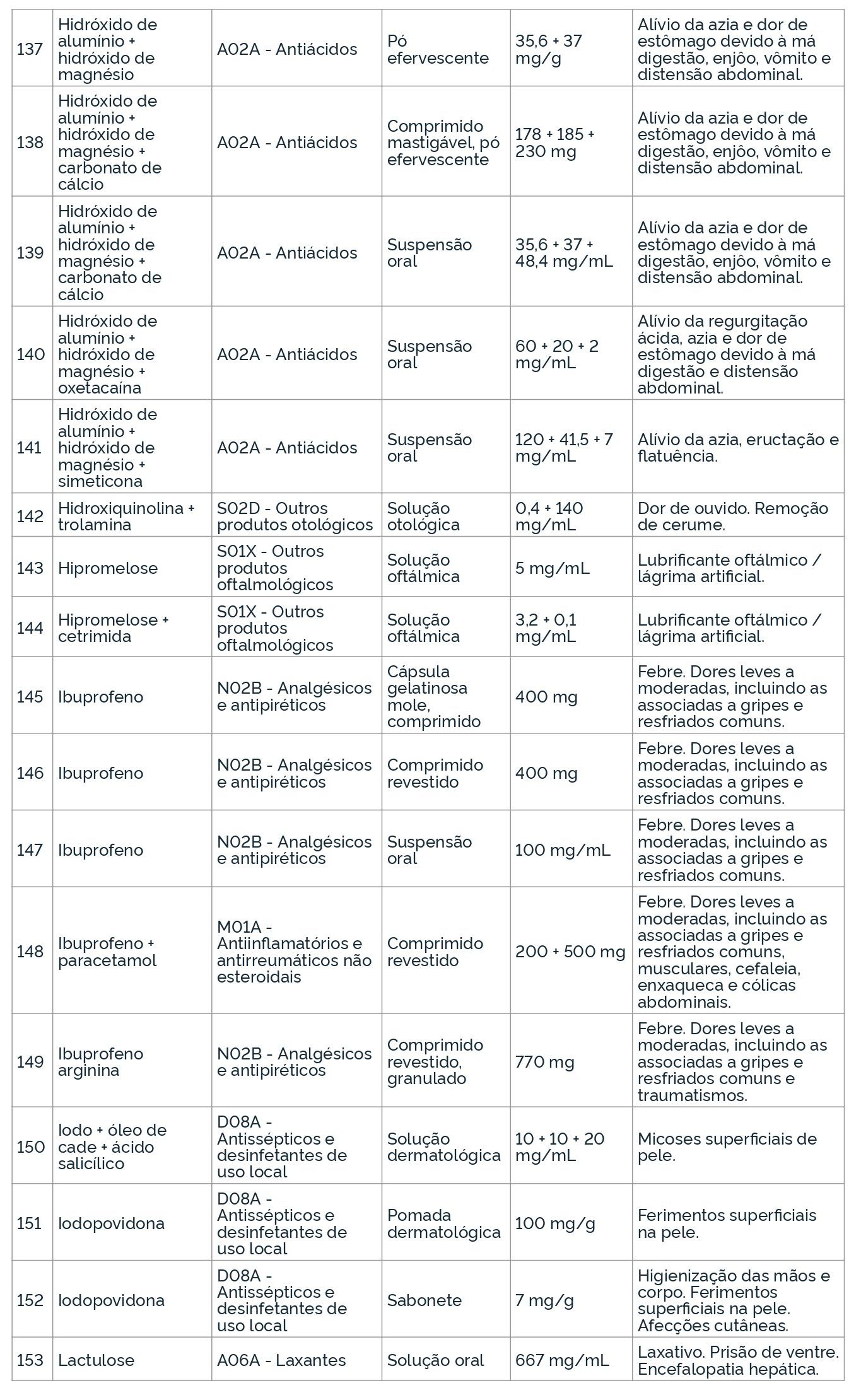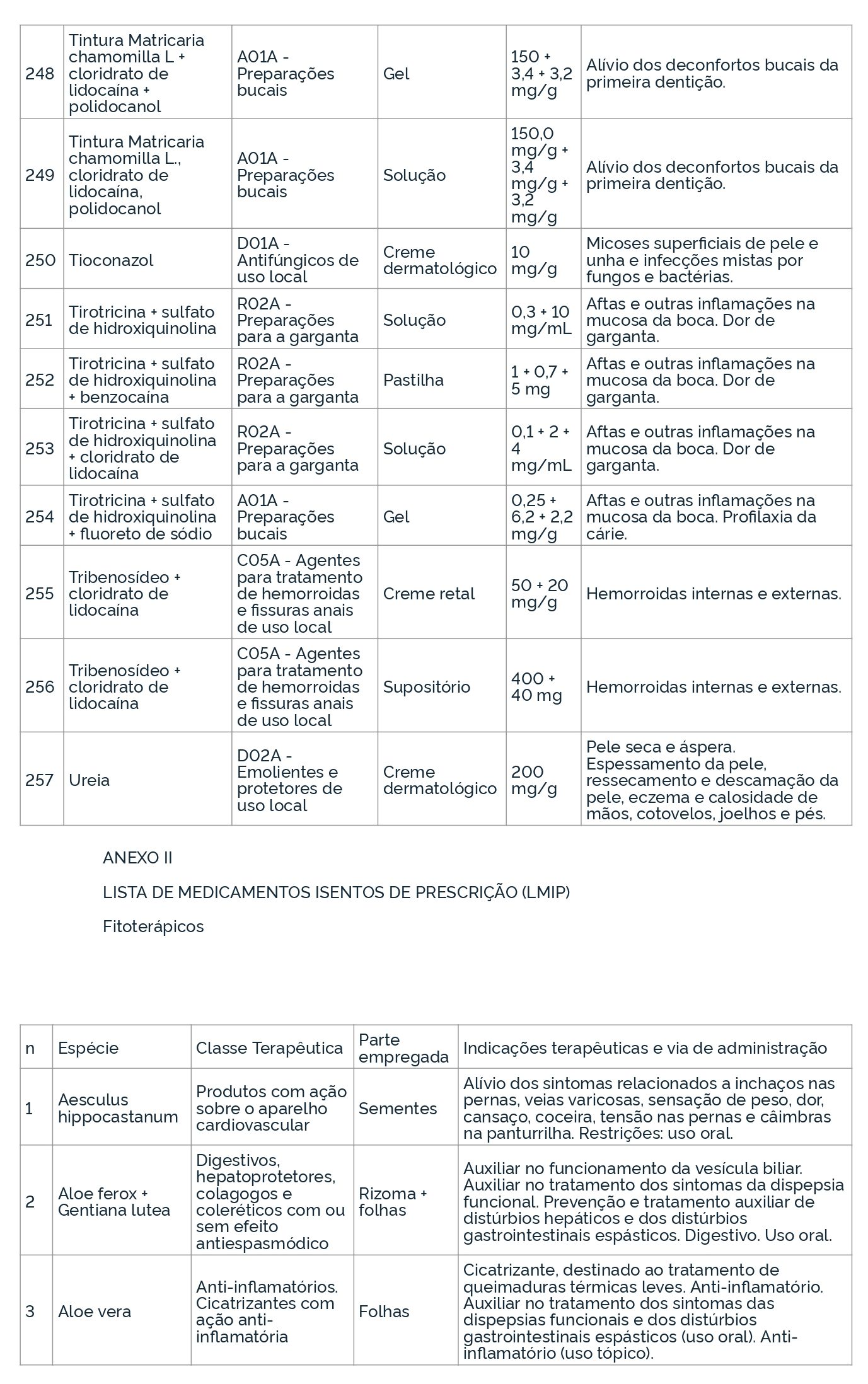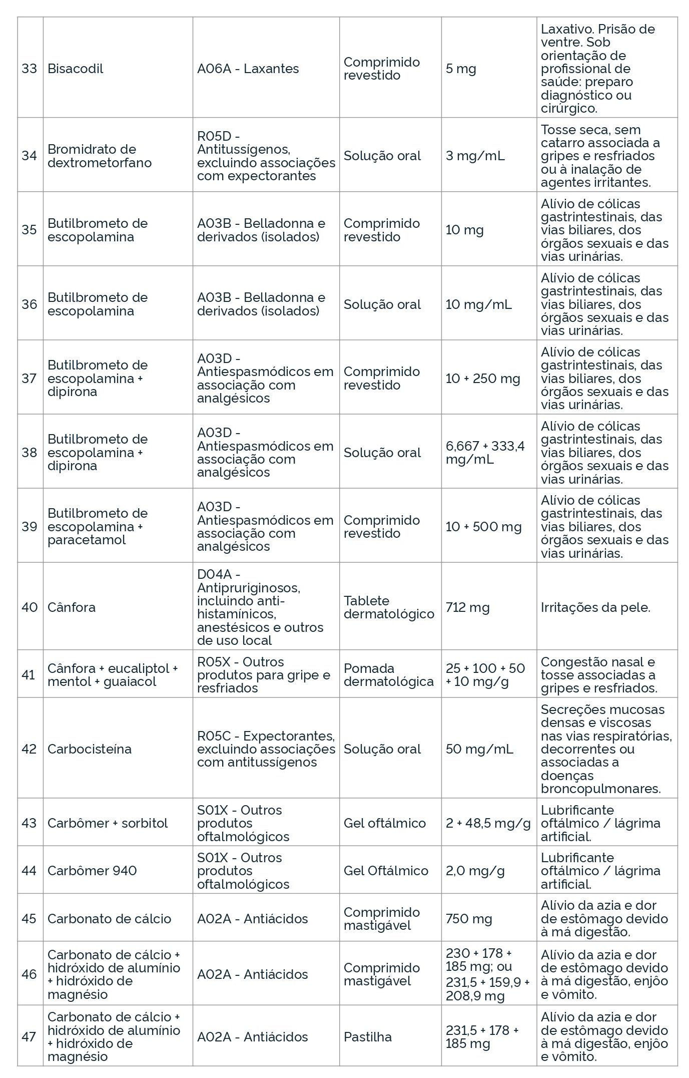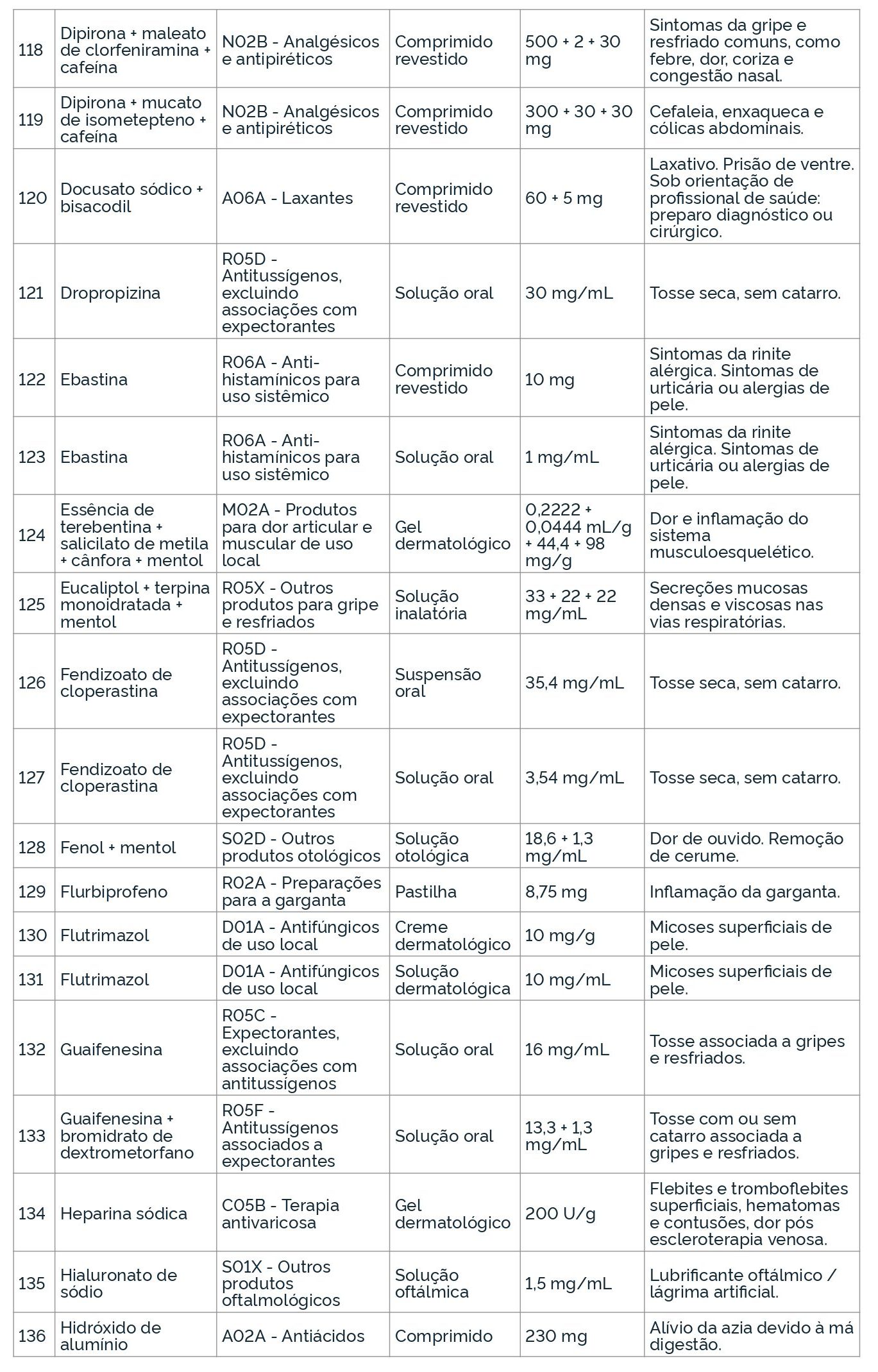 La «Lista de Medicamentos Libres de Receta -LMIP-«, quedó definida en la IV Reunión Pública Ordinaria de la Junta Colegiada de la ANVISA llevada a cabo a mediados del mes de marzo. Los mismos fueron detallados en los anexos I y II de una Instrucción Normativa publicada en el Diario Oficial el pasado miércoles 17 de marzo, la que entra en vigencia hoy jueves 1 de abril. Ver listado.