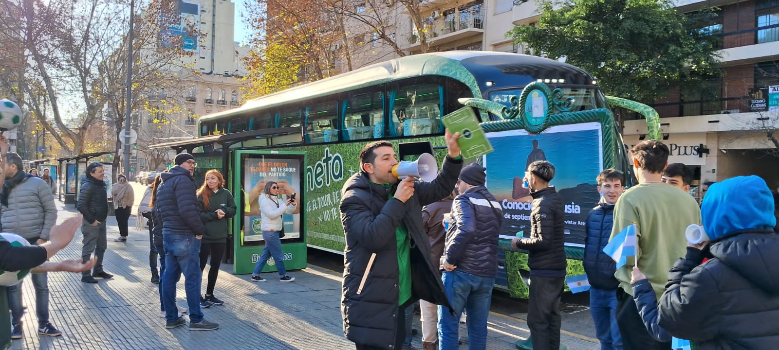 El recorrido, de 15 minutos de duración, incluyó tips y consejos de Ludueña para ver el partido. Sobre el final, se sorteó entre los pasajeros la camiseta oficial de la selección argentina y la pelota de la Copa América.