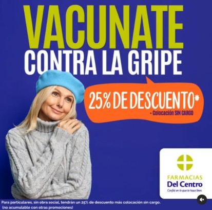 La mendocina Farmacias Del Centro informa que tres de sus sucursales disponen de espacio de vacunatorio contra la gripe, una de ellas en la capital y las otras dos en Godoy Cruz. En su publicación, el retailer detalla que los particulares, sin obra social, tendrán un 25% de descuento y la aplicación sin cargo. Ver Instagram Farm. Del Centro