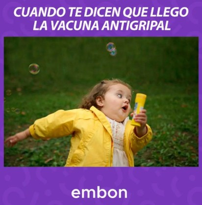 En Rosario, Farmacias Embon, propiedad de la familia Embon, se apoyó en memes para hablar de la vacuna antigripal. Mediante la foto de una niña que sale corriendo ante el mensaje «Cuando te dicen que llegó la vacuna antigripal», la cadena publicó en el marco de sus «Miércoles de memes«, con un formato que la diferenció del resto de los retailers. Ver Instagram Embon.