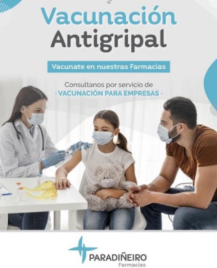 Farmacias Paradiñeiro, fundada hace dos décadas por Hugo Paradiñeiro y Laura Zanotta, avisó a principios de abril que cuenta con vacunas antigripales en sus 12 puntos de venta, en el conurbano y en Capital Federal. Además, la compañía detalló que se puede asistir a sus farmacias sin turno previo y que tiene vigente el servicio de vacunación para empresas. El grupo también es propietario del vacunatorio Previvax, el que responde con stock de dosis tetravalentes, aunque para su aplicación sí es necesario contar con un turno tomado con anticipación vía online. Ver Instagram Paradiñeiro.