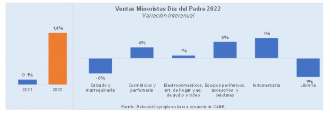 De acuerdo con los datos dados a conocer por la CAME, las promociones lanzadas por los comercios ayudaron a sostener las ventas por el Día del Padre, que finalizaron la fecha con un aumento del 1,4% frente al año pasado, a precios constantes. «Si bien la tasa de crecimiento fue discreta, el 66% de los negocios relevados consideró que sus ventas fueron iguales o mejores a lo esperado», añadió la entidad. Ver Informe.