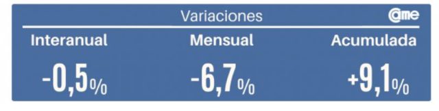 En junio, las ventas minoristas pymes exhibieron una caída interanual del -0,5% a precios constantes, según la medición que periódicamente lleva a cabo la CAME. En la comparación mensual desestacionalizada, también se registró una caída del -6,7% respecto a mayo. Con estos valores, el acumulado de 2025 muestra una suba del 9,1%, en comparación con el mismo período de 2024.