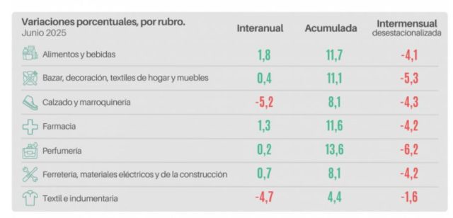 Los datos surgen del Índice de Ventas Minoristas PyMES de la Confederación Argentina de la Mediana Empresa, elaborado en base a su relevamiento mensual entre 1.175 comercios minoristas de todo el país, realizado entre el 1 y 5 de julio de 2025.