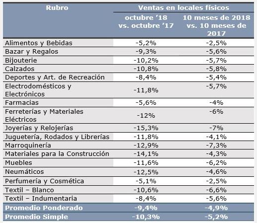 La CAME dio a conocer su informe mensual sobre el volumen de ventas en los comercios minoristas. Durante el mes de octubre, las transacciones cayeron un -9,4% respecto al 2017, acumulando una baja anual del -4.9%.