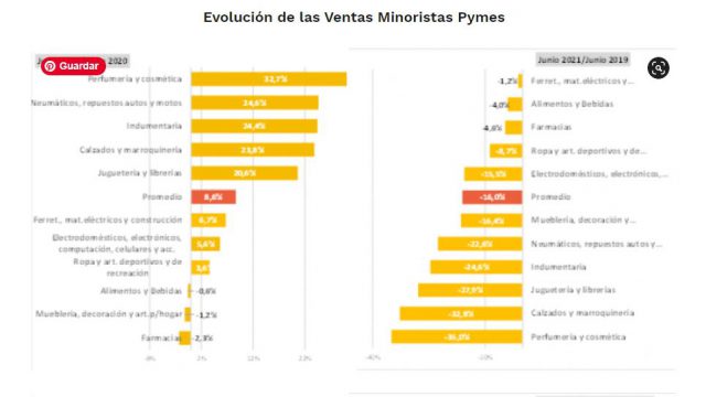 En el primer semestre del año las ventas minoristas pymes acumulan un alza anual de 15,2% frente al mismo período de 2020 y una baja de -13,7% versus iguales meses de 2019. En la primera mitad de 2021, Perfumería y Cosmética creció 23,4%, mientras que Farmacias fue el único de los 11 rubros que mostró una evolución negativa, con un ligero retroceso del -0,7%.