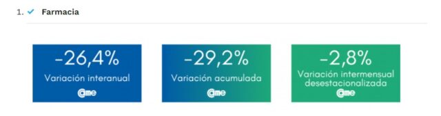 A su vez, en el canal farmacias las ventas retrocedieron -26,4% anual en julio, y acumulan una disminución del -29,2% en los primeros siete meses, frente al mismo período de 2023. En la medición intermensual, descendieron -2,8%. En las farmacias consultadas coincidieron en que se resintió la venta de suplementos y vitaminas no esenciales. También, medicamentos de venta libre tales como analgésicos y también pequeños devices tales como termómetros digitales, nebulizadores y humidificadores.