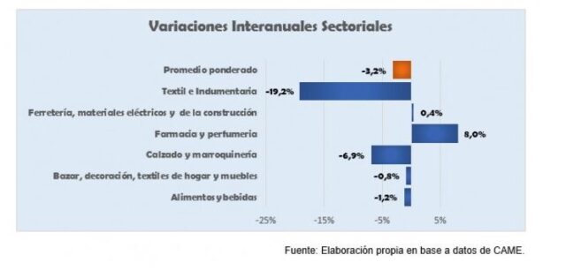 El resto de los ramos se retrajeron, con la mayores caídas contabilizadas por Textil e Indumentaria, que declinó -19,2%; y Calzado y marroquinería, que acumuló un retroceso del –6,9%. Un factor que incidió en los grupos de consumidores con mayor acceso a la tecnología fue el Cibermonday, porque muchas compras previstas para el mes se postergaron para obtener los descuentos de ese evento, explicó el relevamiento.