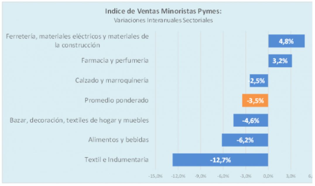 En segundo lugar se ubicó el canal Farmacia y Perfumería y Cosmética cuyas ventas crecieron un 3,2% interanual en julio, aunque bajaron -4,4% en la comparación mensual. Los negocios consultados destacaron «los problemas y demoras que están teniendo para cobrarle a las obras sociales. Esta situación genera cierto desfasaje financiero dado que los precios de reposición terminan siendo más elevados«, según se puntualizó en el reporte.