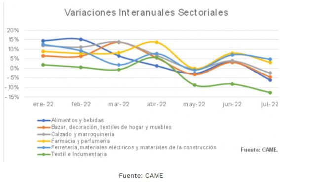 Las ventas en el canal Farmacias y Perfumerías subieron un 3,2% durante julio de 2022, en relación a igual mes del año pasado, por encima de la caída del -3,5% que arrojó el promedio de los seis rubros relevados por CAME. En la comparación contra junio, los ingresos de este sector declinaron un -4,4%.