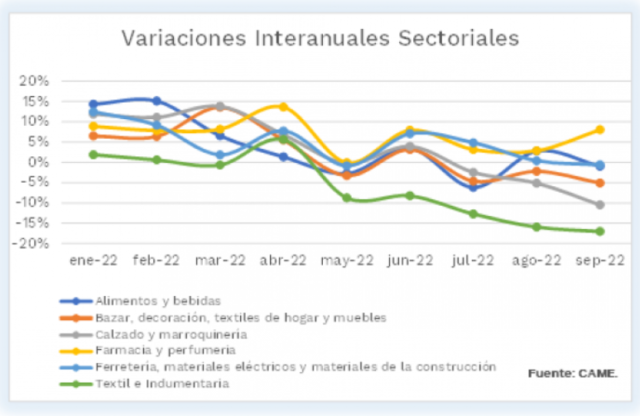 Las ventas en el canal Farmacias y Perfumerías subieron un 8,1% durante septiembre de 2022, en relación a igual mes del año pasado, por encima de la caída del -3,5% que arrojó el promedio de los seis rubros relevados por CAME. Fue el único sector que presentó un desempeño positivo, en claro contraste, por caso, con Textil e Indumentaria que se desplomó -17,0%.