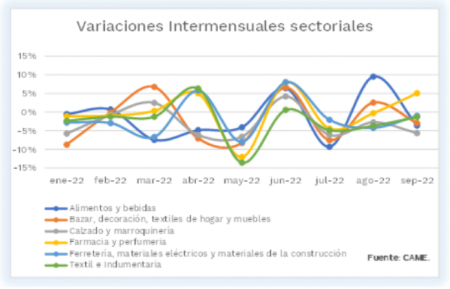 Las ventas minoristas PyMES cayeron -3,5% en septiembre frente al mismo mes del año pasado medidas a valores constantes. Todo según el relevamiento que realiza la Confederación Argentina de la Mediana Empresa (CAME).