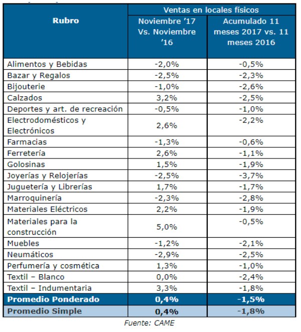 Al momento, con el resultado correspondiente a noviembre, las ventas minoristas en los once meses de 2017 acumulan una baja anual del -1.5%.