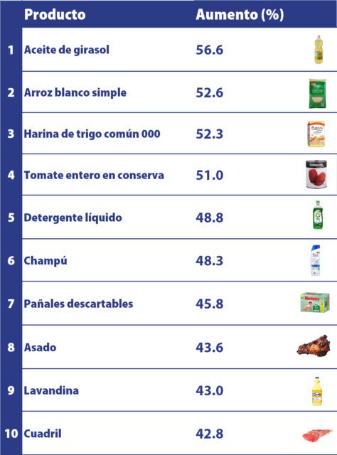De acuerdo al informe publicado por el organismo que sigue encabezado por Marco Lavagna, los productos de la canasta general que más aumentaron en diciembre del año pasado fueron el aceite de girasol, con un 56,6%; el arroz blanco simple, con el 52,6%; y la harina de trigo común 000, con el 52,3%. En tanto, y según el desglose realizado por el equipo de Pharmabiz, el conjunto de artículos de perfumería y aseo contemplados en el índice exhibió una suba del 41,8% para el último mes año. Así, alcanzó un 198,4% para el 2023.
