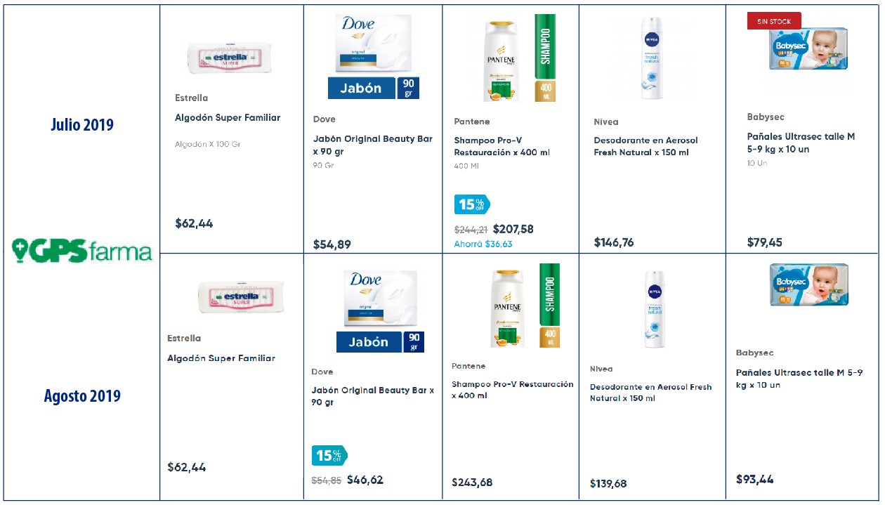 Le siguió el champú que se retocó un 6.1%, a la vez que alcanzó el primer lugar en el acumulado anual con un 41%. Los pañales descartables en tanto, se incrementaron un 5.6% en el mes y registraron un alza anual de 39.6%. El desodorante se disparó un 4.2% en este período y totalizó un 31.9% al momento. El que menor aumento tuvo y quedó por debajo de la inflación general, pero razando, fue el jabón de tocador con un 3.9% y un 33.5% en lo que va del 2019. Ver Informe INDEC.