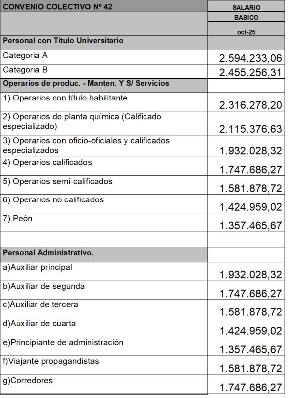 El documento definió que quienes están encuadrados bajo el mayor rango en el escalafón, es decir aquellos que tengan título universitario categoría A, percibirán ingresos por $2.594.233,06 (u$s 1.705,72) en concepto de los sueldos de octubre. Mientras que el sueldo de un operario con título habilitante será de $2.316.278,20 (u$s 1.522,96). Por su parte, un operario calificado alcanzará los $1.747.686,27 (u$s 1.149,11) por este mes.