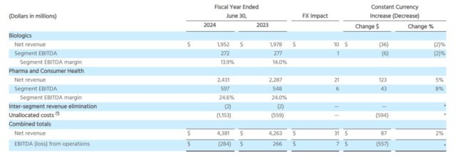 El reciente aumento de la capacidad productiva de sus instalaciones de fabricación de medicamentos en América del Norte y Europa le sigue dando réditos a la norteamericana Catalent. En su ejercicio económico 2024 cerrado el 30 de junio, la compañía que en febrero de este año fuera adquirida por la controlante de la danesa Novo Nordisk y que comanda el italiano Alessandro Maselli exhibió un crecimiento del 2% en sus ingresos.