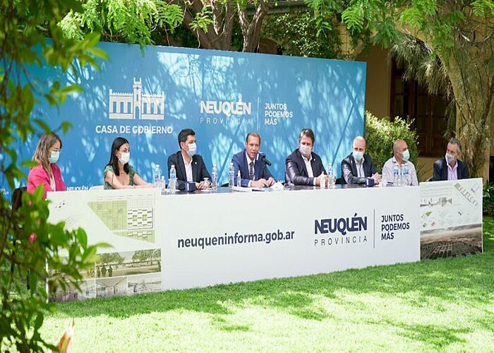 El gobernador de la provincia de Buenos Aires, Axel Kicillof; el ministro de Obras Públicas, Gabriel Katopodis; la ministra de Salud, Carla Vizzotti; el...