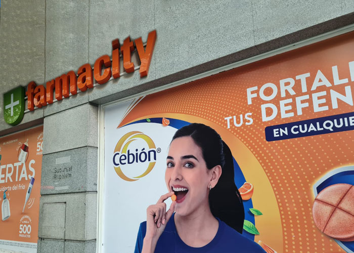 Y en ese contexto, para marcar cuál es el canal que pisa fuerte en la venta de suplementos, P&G puso un aviso a la calle en la entrada de una de las sucursales de Farmacity, ubicada en Callao y Vicente López, en Recoleta. Allí el retailer del grupo Pegasus, el más importante en el segmento de farma en la Ciudad de Buenos Aires, pone en spot al producto que apunta a fortalecer las defensas y que es enteramente importado desde Colombia, donde es fabricado por el tercerista Altea Farmacéutica.