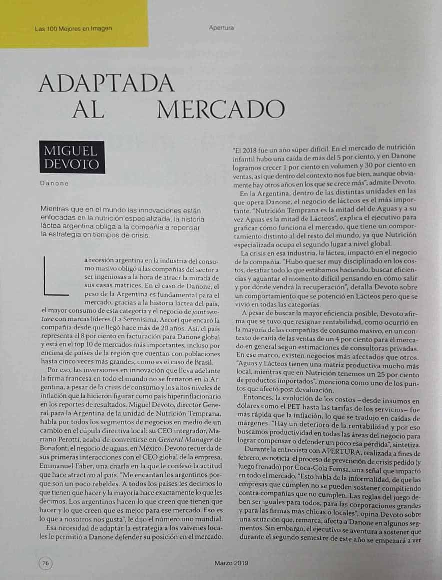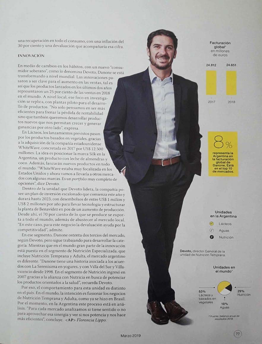 Miguel Devoto, el director local de la unidad de Nutrición Temprana de la francesa Danone, puso la lupa sobre la caída del consumo y la crisis económica en la Argentina, en una entrevista concedida a la revista Apertura, realizada a fines de febrero y publicada en la edición de marzo.