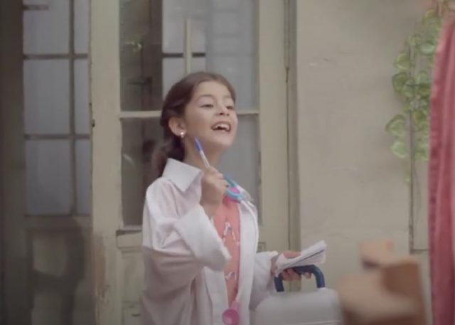 Para ello montó un spot en el que una niña «convertida» en médica pregunta cuántas semanas de embarazo tiene su mamá, la edad de su hermanito y la de sus abuelos, para concluir que todos deben aplicarse la vacuna.