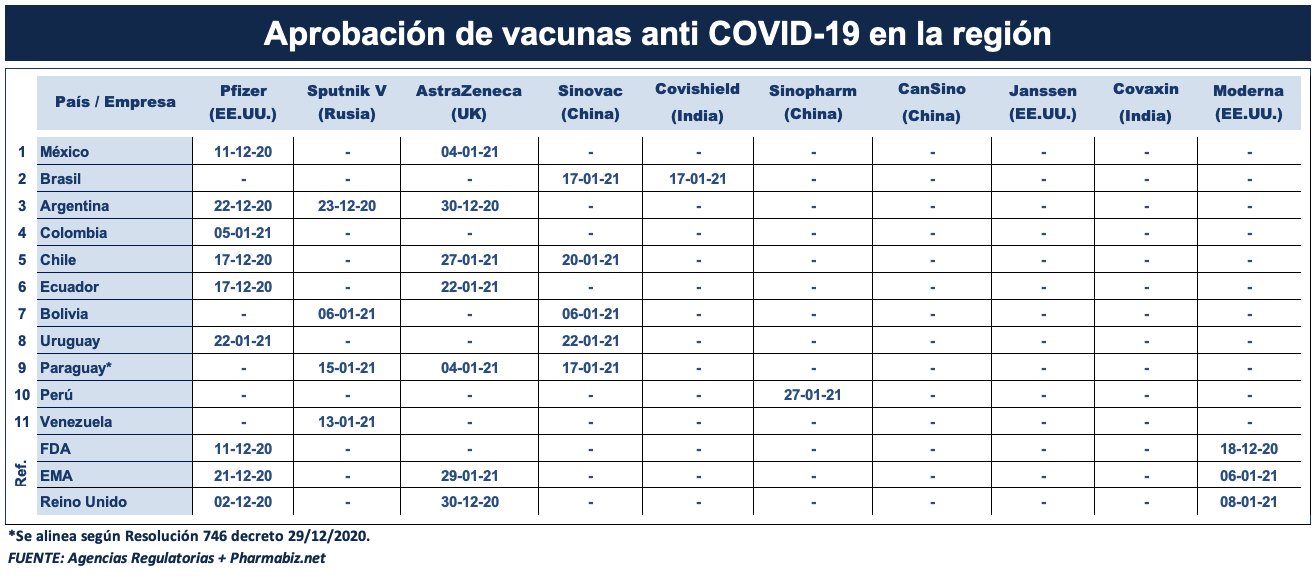 La carrera por la aprobación de vacunas anti COVID-19 en América Latina sigue a buen ritmo. Ahora, el Instituto de Salud Pública de Chile autorizó el uso de emergencia de la desarrollada por el laboratorio AstraZeneca junto a la Universidad de Oxford. Ver comunicado