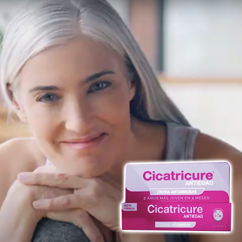 Bajo el claim «los cambios que empiezan por dentro se notan por fuera. Y en un cuidado anti-edad, también», la mexicana Genomma pone en primer plano a su crema Cicatricure antiedad. Dice que su presentación rellena arrugas profundas, hidrata y reafirma la piel. Además promete aumentar hasta un 50% el colágeno y un 20% el ácido hialurónico.