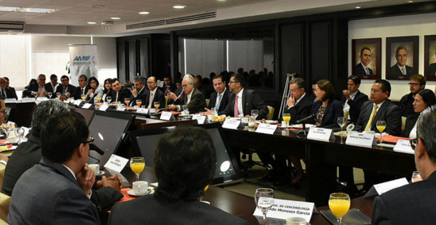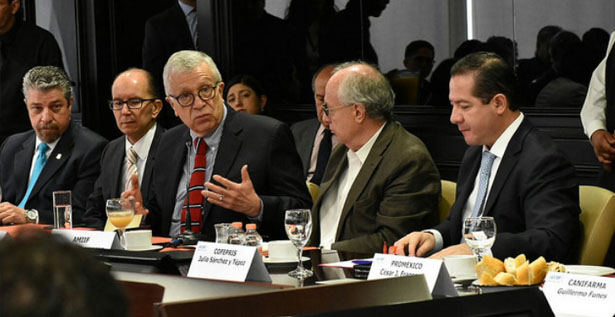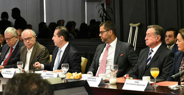 Del encuentro participaron Guillermo Funes, presidente de la CANIFARMA; Abelardo Meneses, director del INCAN; Cristóbal Thompson, director de la AMIIF; César Fragozo, jefe de la Unidad de Desarrollo Sectorial de ProMéxico, entre otros referentes de la industria.