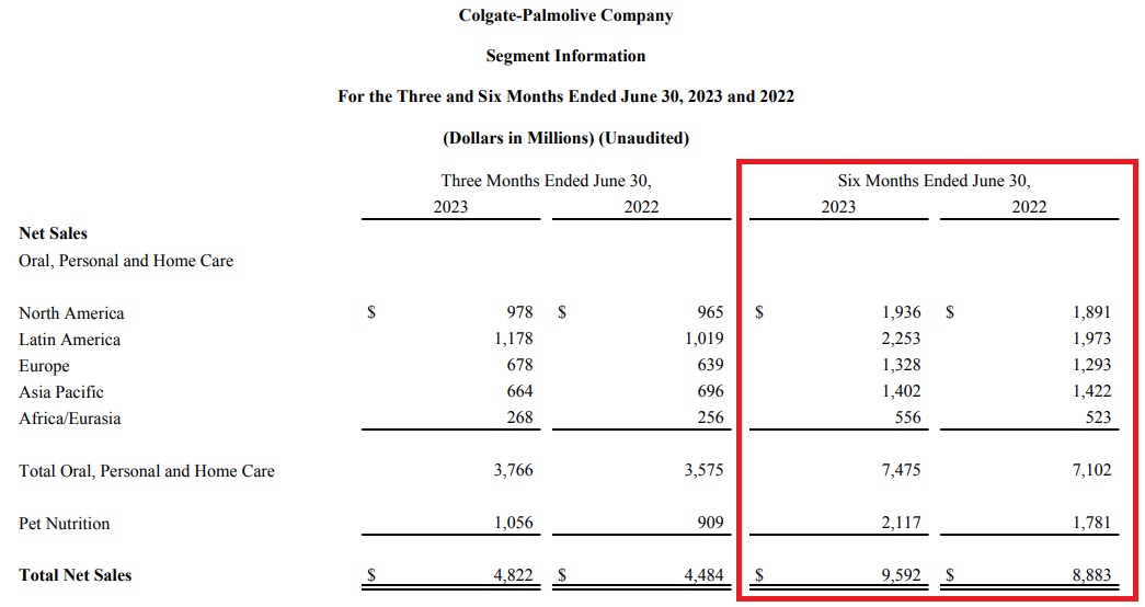 En su reporte, Colgate destacó que durante el segundo trimestre del año el crecimiento de las ventas orgánicas en Latam estuvo impulsada por Argentina, México, Brasil y Colombia parcialmente por una disminución de ingresos en Colombia. Por su parte, la facturación semestral en Cuidado Oral, Cuidado Personal y del Hogar en Europa creció 2,7% a u$s 1.328 millones, mientras que en Asia Pacífico ascendió sólo 1,43% a u$s 1.412 millones y África/Eurasia 6,31% a u$s 556 millones.