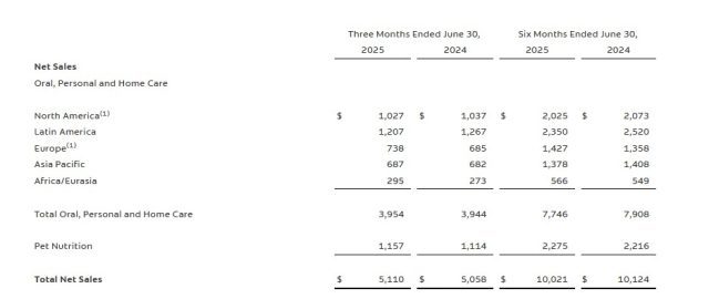 Su negocio de Oral, Personal and Home Care registró una merma del 2,0% en el año a u$s 7.746 millones, con una aporte del 77,3% a la caja de la empresa. Por su parte, la unidad de Pet Nutrition, que tiene a Hill’s como marca insignia, facturó u$s 2.275 millones, un incremento del 2,6% en comparación con los primeros seis meses del año pasado.