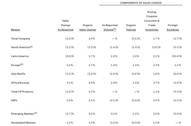En términos geográficos, las ventas de Colgate en Mercados Emergentes cayeron un -3,7%. En tanto, la facturación de Mercados Desarrollados presentó un aumento del 1,2%.