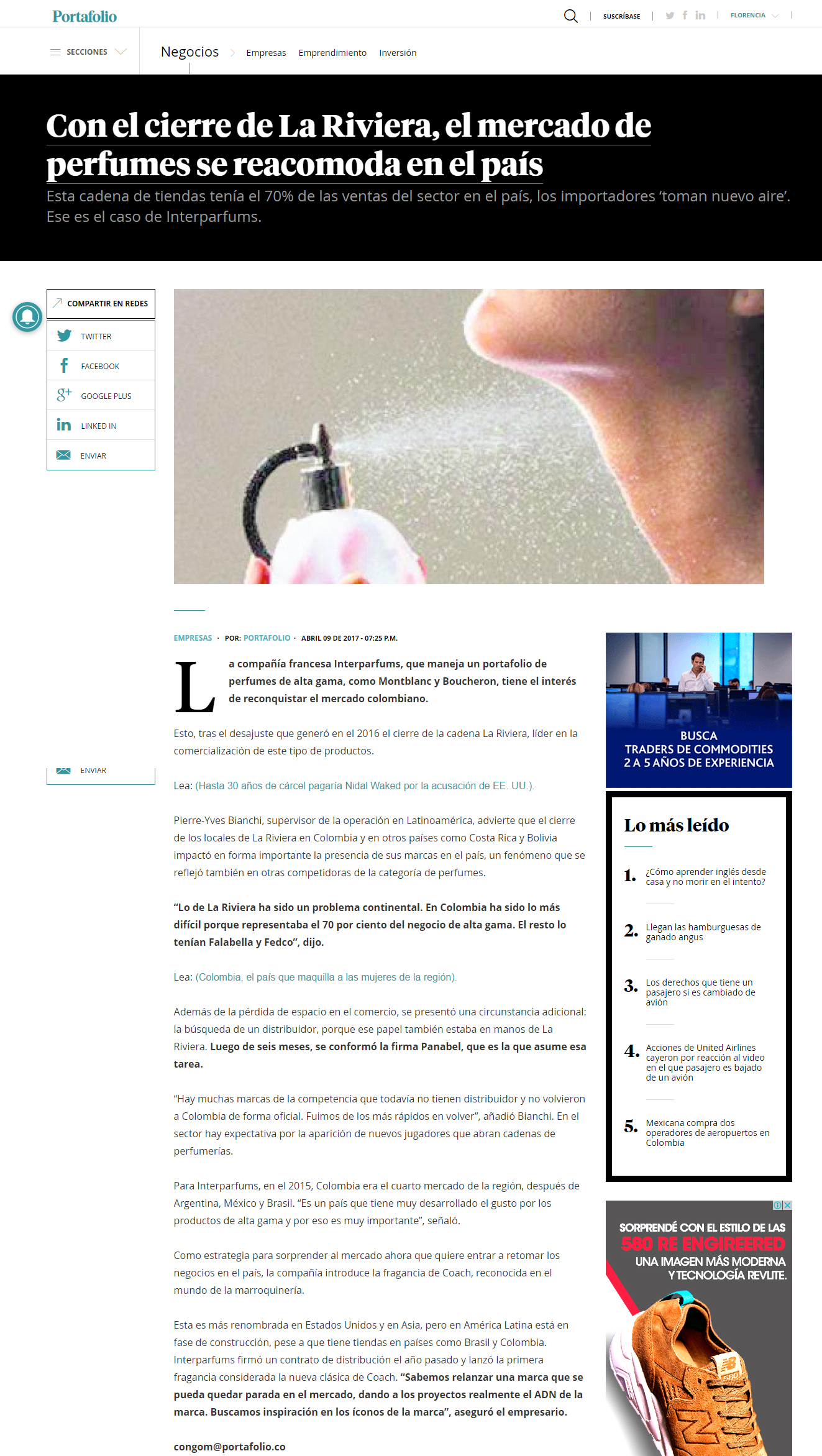 Tras este desajuste y la falta también de un distribuidor, las compañías comenzaron a ver con buenos ojos al mercado colombiano. Tal es el caso de la francesa InterParfums que, según señala el diario Portafolio, para la empresa, Colombia era el cuarto mercado de la región, después de Argentina; México y Brasil. Ver artículo