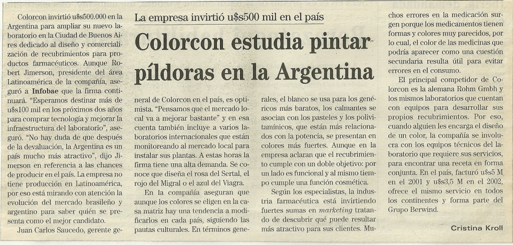 Colorcon estudia pintar píldoras en la Argentina